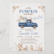 Fall Brown Wildblumen Pumpkin Truck Baby Dusche Einladung Boy's Herbst Blätter Kürbiskürbis Baby Dusche Einladung mit einem dunkelblauen LKW, weißer Kürbis und ein Hauch von blauen und Herbst Farben Blumenarrangements. Die Babydusche des Kürbiskampfflugzeugs im Herbst ist ideal für eine Babydusche im Herbst.