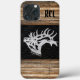 Personalisieren Sie Ihr Handy mit diesem "One of a Kind" Bull Elk iPhone Case. Es verfügt über eine Silver Bugling Bull Elk Silhouette auf schwarzem Leder Hintergrund...mit Holzgrenzen! Dies ist ein Original Art Design von Künstler Kerry Miller.