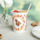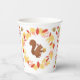 Ein glückliches Gießereihörnchen hält eine begabte Nuss aus der reichen Herbsternte. Blätter von Zitronengelb, verbranntem Siena und Korallen schmücken die Szene.