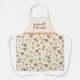 Diese niedliche Herbst-Schürze bietet eine wunderschöne Aquarellküche, Obst und Blume, die in einem skurrilen Muster angeordnet sind, mit einem "Dankeschön" auf einem bräunlichen Hintergrund.