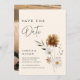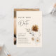 Moderne Script Save the Date Card. Entworfen mit einer schönen Aquarell Gold Champagner Flasche. Passende Artikel in unserem Shop Cava Party Design.