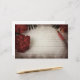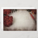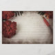 Schreibpapier mit einem Blumenfoto im Herbst. Verbleibtes Schreibpapier und Stift oben mit hübschen roten Blume und grünen Blätter, die an den Kanten angebracht sind.
