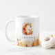 Elegante Aquarellfarben-Blätter umrahmen den Boden dieser Tasse, während der Buchstabe G eine Collage aus festlichen Fallen rot-orangen und gelben Blätter ist, Personalisieren mit einem Namen, um es einzigartig zu machen.
