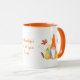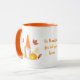 Behalt dich warm, indem du dein Lieblingsgetränk genießt, während das Wetter mit dieser zauberhaften Tasse des Herbstes beginnt kälter zu werden. Das Design ist mit einem Gnome mit Kürbis und Fall verlassen mit Orange als Hauptfarbe.