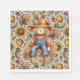 Ein einzigartiges Papier Napkin für die Herbstsaison Gemustert in Sonnenblumen, Truthühnern, Pumpkins, Cornucopia in Browns und Orangen mit Scarecrow Center