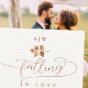 Ein kleiner Zweig von Kupferbuchen-Laub in Aquarellfarben und ein Kupfer- und Rostfarbenmuster schmücken das Wappen in diesem eleganten, einfachen, eleganten und modernen Hochzeitsschema. Es zeichnet sich durch moderne, elegante Skriptkalligraphie mit reichlich Schnörkeln und dem Titel "Fallend in Liebe" aus. Monogramm Wappen für Braut und Bräutigam. Luxuriös aber einfach, klassisch, aber elegant, modern, aber zeitlos. Eine schöne Wahl für Herbst- oder Herbsthochzeiten mit Kupfer, Orange, Terrakotta, Beige, Rot, Orange und anderen Herbsttönen.