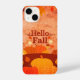 Fall iPhone 14 Gehäuse, um Ihr Telefon in einer stilvollen Weise zu schützen. Dekoriert mit Blätter und Kürbissen, die die Herbstsaison bezeichnen. Kann als Geschenk gegeben werden.