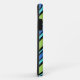 Ein lebendiges Case-Mate 'Barely There' Gehäuse zum Schutz Ihres Samsung Galaxy S4 Smartphones, mit einem diagonal gestreiften 'Blue Moons' Muster in heller Blues und neon-grün und schwarz. Ein Teil des Posh & Painterly 'Blue Moons' reicht von einem handgemalten Papier-Collage-Design von Judy Adamson.