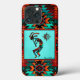 Dies ist ein einzigartiges "One of a Kind" Southwest Kokopelli Cell iPhone Case! Es besitzt einen Kokopelli, der die Flute unter der Sonne auf einem türkisfarbenen Hintergrund spielt...Umgeben von einer Südwestgrenze in Türkis, Orange & Schwarz. Original Art Design von Künstler Kerry Miller.