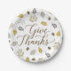 Fügen Sie irgendeinen Feiertagsbeifall Ihrem Erntedankabendessen mit dieser rustikalen Platte hinzu, die Falllaub in den Schatten des Goldes, Silber kennzeichnet, und Braun und "gibt Dank" in einem elegante Kalligraphie inspirierten Schriftart.