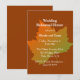 Herbstthematische Hochzeitsessen-Probe-Einladung, mit Grafiken eines bunten Ahornblattes, in der Mitte, vor einem Kürbisgewürz-Hintergrund. Personalisieren Sie den weißen Text so, dass der Anzug für Ihre Veranstaltung erforderlich ist. Die Einladung wird auf der normalen Stil Grundkarte angezeigt, wählen Sie die Form und Kartenvorrat, die Sie bevorzugen.
