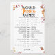 Würde sie lieber für Bachelorette oder Hennenjunge Party spielen. Der Inhalt ist vollständig anpassbar - Sie können einige oder alle Fragen ändern. Das ist ein lustiger Eisbrecher für Party - jeder füllt das Quiz aus und der Gewinner ist der Spieler mit den besten Antworten. Fragen sind für jedes Alter geeignet.