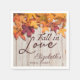 Ideal für Ihre Hochzeitsfeier oder Ihr Brautparty personalisierte, rustikale Servietten. Die Herbstfarben in den Blätter und das Holzpaneel machen es zu einem idealen Ort für eine Hochzeit auf dem Lande.