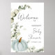 Ein kleiner Kürbis ist unterwegs! Machen Sie Ihre Herbstdusche zu einem eleganten und unvergesslichen Event mit unserem Herbst Greenery Blue Pumpkin Baby Shower Welcome Poster. Mit üppigen Aquarelleukalyptusbäumen und einem einladenden blauen Kürbismotiv Set dieses Willkommensschild den Ton für Ihre traumhafte, im Herbst inspiriert Feier. Dieses Poster kann auch als druckbare Vorlage heruntergeladen werden, wenn Sie es vorziehen, sich selbst zu drucken.
