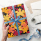 Ein niedliches Verpackungspapier mit den Blättern aus fallendem Ahorn in einer Farbpalette im Herbst. Ideal für Oktober, Herbst und Erntedank.