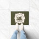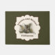 Diese personalisierte Türmatte zeichne Herbsteichen-Blätter und Eichen in warmen, waldfarbenen Tönen aus braunem, grünem und gedämpftem Gold.