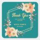 Ein eleganter Geburtstag mit einem edlen Dankeschön-Aufkleber mit einer orangefarbenen Blume und braunen Blätter mit moderner Goldtypografie auf aquamarinem Hintergrund.