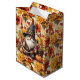 A Vintage Fall Orange Floral Medium Gift Bag With Thanksgiving Gnome