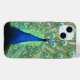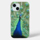 Stolzer Pfau mit leuchtend blauer Karosserie, die gegen seine geöffneten Schwanz Federn von grün und blau angezeigt wird.