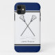 Dieses iPhone 5/5S Gehäuse verfügt über ein Paar Lacrosse Sticks, die auf der Vorder- und Rückseite des Gehäuses gekreuzt sind. Schwarze, weiße und blaue Bänder liegen oben und unten. Personalisieren Sie mit Ihrem Namen und Ihrer Nachricht. Kontaktieren Sie uns, wenn Sie ein anderes Farbschema wünschen.