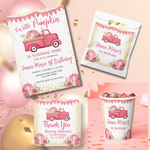 FALL PINK TRUCK PUMPKIN 1. GEBURTSTAG Einladung