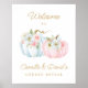 Herbst pink und blau Kürbisgeschlecht offenbaren Party Willkommensplakat. Klicken Sie auf die Schaltfläche "Weiter anpassen", um zu bearbeiten. Passende Artikel in unserem Shop Cava Party Design