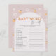 Mit dieser lustigen Baby Word Scramble Spielkarte, die auf Ihre A Little Pumpkin Is On the Way Baby Dusche Kollektion abgestimmt ist, können Sie Ihre Gäste herausfordern. Dieses Spiel ist mit sanften Kürbissen und Gänsen in gemütlichen Herbsttönen dekoriert und ist die perfekte Mischung aus Spaß und Herbst-Charme. Die Gäste werden sich freuen, während sie die Mama-to-be feiern, die mit dem Baby verwandten Wörter zu entwirren. Ideal für Mädchen, Jungen oder geschlechtsneutrale Duschen!