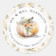 Aquarellfarbene Herbstblüte mit weißem Kürbis, Herbstblätter und Wildblumen geben das Adressetikett, Klassischer Rundaufkleber zurück. Elegantes Rücksendelabel, das sich als Umschlag Aufkleber verdoppeln kann, indem es eine elegante Touch zu Ihrer Einladung hinzufügt. Handgeschriebene Skripttypografie mit Name, Adresse und Monogramm des Absenders über einen modernen, einfachen Rundrahmen. Warme Herbstfarben aus gebranntem Orange, Terrakotta, braun, matt grün und Elfenbein. msp0113