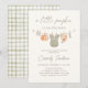 Feiern Sie die Ankunft eines kleinen mit dieser eleganten grünen Baby Kleidung Baby Dusche Einladung.