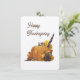 Dieses saisonale Blankartendesign besticht durch eine Herbstkürbis- und Herbsternte-Szene mit "Happy Thanksgiving" in Schriftzeichen.