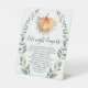 Diese Babydusche spätabends Windeln Podest-Schild mit einem Aquarellkürbis und Fall grüne goldgelben Blattkranz.