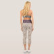Mit diesen trendigen Leggings im Herbst etwas Spaß machen. Mit einem Kürbissuchdruck und Herbstlauben in schwarz und subtil orange, sind diese Leggings eine einfache Grundlage für viele Outfit-Entscheidungen im Herbst. Die Grundfarbe der Beine ist eine schöne Bräune in einer der diesjährigen Modepaletten: "weißer Schwan". Die Hintergrundfarbe für den Bund ist ein Pflaume oder Auberginen lila.