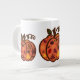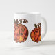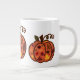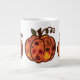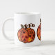 Einfache, dunkelorange Kürbis mit verschiedenen Herbstlauben in verschiedenen Formen und Farben. Gelb, braun, bordeauxfarben, grün, rot und orange sind die Ausstattungen.