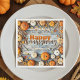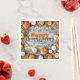 Diese individuell anpassbare Papierserviette aus Erntedank zeichnet sich durch ein warmes Herbstdesign aus. Der Hintergrund ist ein rustikales Motiv aus grauem Holz, gerahmt von gepolsterten, orangefarbenen und weißen Kürbissen, bunten Herbstlauben und verdrehten Ästen. Das Zentrum zeigt "Glückliches Erntedankfest". Entscheidend ist, dass die Serviette vollständig angepasst werden kann, sodass Sie einen Familiennamen oder eine persönliche Nachricht unter dem Gruß hinzufügen können. Dies macht es zu einem praktischen Tischaccessoire und zu einem einzigartigen, unvergesslichen Sake für Ihre Feier.