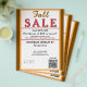 Fall sale. Jewelry or any business type supplies. Orange and brown background. Insert Sale price and date details. Upload Your Logo, or delete to leave area blank. Insert Name and Website, Social Media Handle, or other contact QR Code. Fall written in orange shadow script. Sale written in large red typography. Thank You is written inside large white heart on backside. Original Design by TamiraZDesigns.