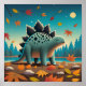 Fall Stegosaurus mit Blätter: Niedliche Wall Art Poster