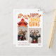 Begrüßungskarte für den Urlaub mit einem bunten festlichen Satz "Glückliches Erntedankfest" mit einem Truthahn und zwei Fotos Ihrer Wahl. Personalisiert diese Grußkarte mit Ihrem Namen und Jahr.