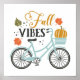 Das Design "Fall Vibes" ist eine charmante und skurrile Illustration, die die Essenz des Herbstes perfekt einfängt. Das zentrale Element des Designs ist ein Vintages Fahrrad, das in einer sanften, pastellblauen Farbe gerendert wird. Das Fahrrad hat einen klassischen Retro-Look mit geschwungenen Lenkern und einem an der Vorderseite befestigten Korb.