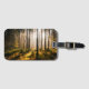 Dieses Foto kennzeichnet Sunrays der steigenden Morgensonne, die durch einen nebeligen Fallwald in der sächsischen Schweiz in Ostdeutschland kommt.