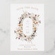Herbstwilde Blume Doppelbogenrahmen Hochzeitsknöpfe Foto Ankündigung Datum freihalten, mit echt gepresster Folie. Fügen Sie Ihr Foto zur Rückseite hinzu.