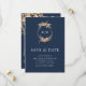 Fall Wildblume Wappen QR Code Navy Blue Wedding Save The Date