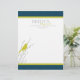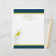 Eleganter Vogel hockte auf Niederlassung mit einem subtilen Damastdruck und chartreuse Kontrastfarb- und -silberakzenten.