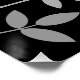 Gefallene Blätter in verschiedenen Blatt-Silhouetten in Grau und Weiß auf schwarzem Hintergrund.
