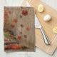 Fallende Blätter Landschaft Küche Handtuch. Grün, Gelb, Orange, Rost und Rot blasen die Luft aus den Fernbäumen. Herrliche rustikale Herbstlandschaft und das Gefühl des Herbstes auf einem warnen Steinboden, um Ihre Dekoration für die Ferienzeit zu verbessern. Wunderbar für amerikanische und kanadische Erntedank Ferien.