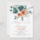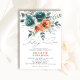 Die Herbstsonnendusche Aquamarin Burnt Orange Botanical Floral Whimsical Wedding oder Bridal Shower Einladung erweckt das Wesen des Herbstes mit einer bohobaroten, blühenden Blütengrenze mit Aquarellfarben-Rose und Hochzeitsblättern in den reichen, warmen Farbtönen aquamariner und terracotta verbrannter Orange sowie dem Titel "Falling in Liebe" in moderner Kalligrafie. Das einladende Design wird durch eine helle Aquarellstruktur ergänzt, die die frische Luft und die goldenen Farbtöne des Herbstes hervorruft. Ideal für eine Braut, die ein rustikales Brautparty, ein Gartenfest oder ein gemütliches Hinterhoffest planen, spiegelt diese Einladung perfekt das gemütliche und romantische Ambiente der Herbstsaison wider und verbindet romantische Kunstkunst mit eleganter Einfachheit für jeden Ort.