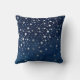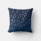 Stilvolles Kissen mit dunkelblauem Himmelshintergrund und abfallenden Silberstern.