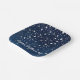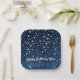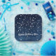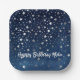 Die Party Platte aus Papier zeichnet sich durch eine schöne dunkelblaue himmlische Hintergrundfarbe aus, mit abfallenden silbernen Sternen. Personalisieren Sie Ihre Daten mit dem Namen oder einer anderen speziellen Nachricht.