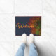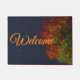 Schauen Sie im Herbst durch die Äste eines Hochbaumes hinauf. Die herabfallenden Blätter Bordeaux, Rot, Gold, Orange, Gelb und Blau funkeln gegen den tiefblauen Himmel.