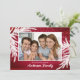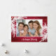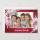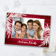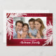 Diese Weihnachtskarte des Fotos ist mit immergrünen Zweigen versehen, die auf einem dunkelroten Hintergrund in Weiß erscheinen. Das Design ist mit subtilem fallendem Schnee betont.