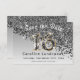 Senden Sie Ihren Freunden und Ihrer Familie ein stilvolles "Save the Date" für Ihren 16. Geburtstag mit diesem modernen, schwarzen Glitzer, der auf der Seite eines silbernen Farbverlaufes fällt.